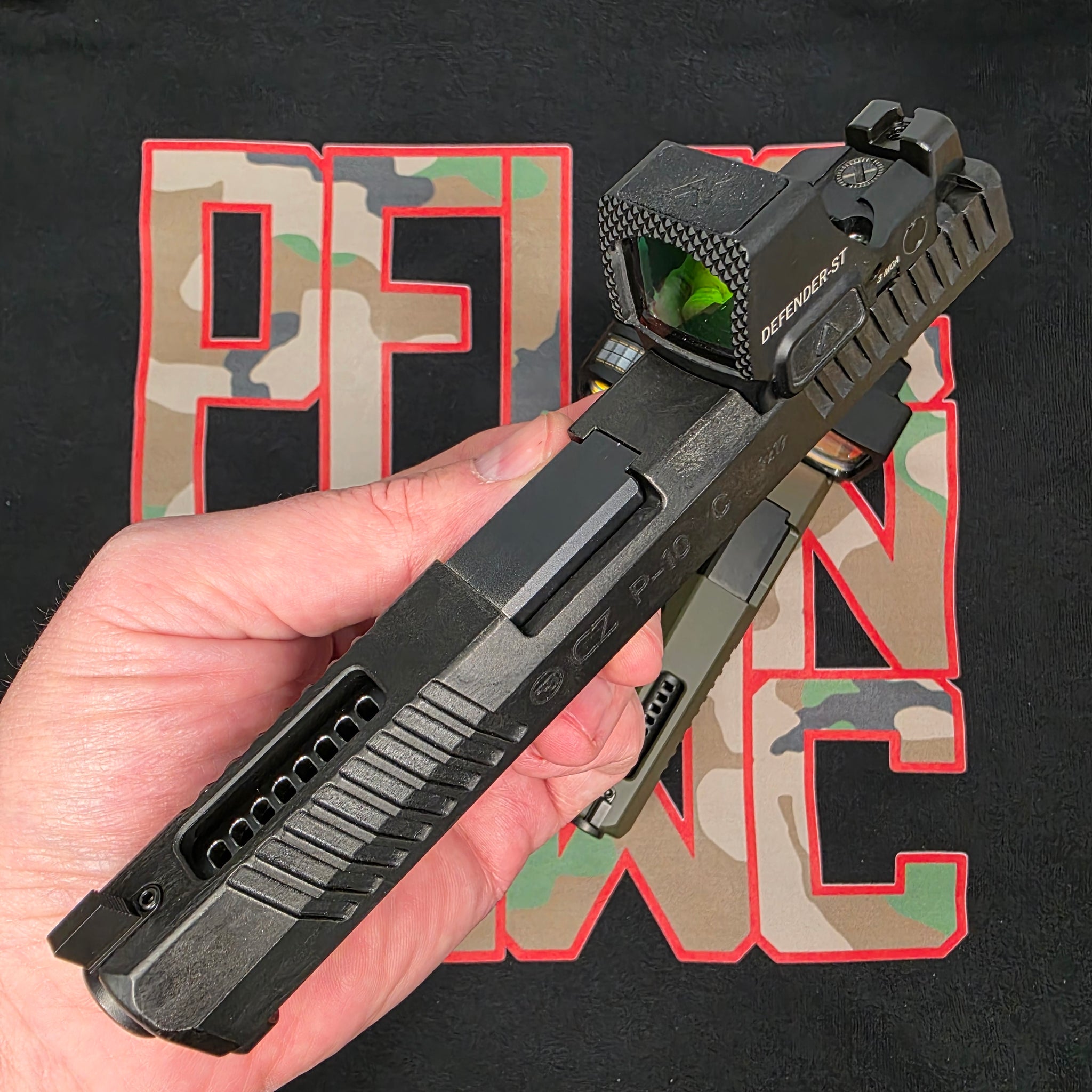 Enhanced front serration milling service for your CZ P-10 C or F slide. Choose from side only, top only, or both. Looks cool and add a little extra grip when manipulating the slide.